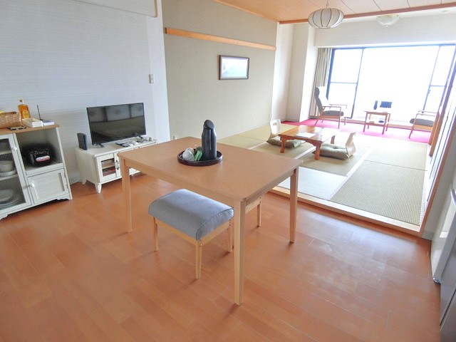 施設もサービスも充実した総戸数383戸のリゾートマンション。掛け流しの温泉大浴場、屋内外プール、スポーツジム等無料 フロントは安心の24時間対応。週4日病院、スーパーへの無料送迎もあり!★南向き、海・伊豆七島を正面に望みます。和室の仕切り壁撤去、DKフローリングに変更済 賃貸でも募集中!